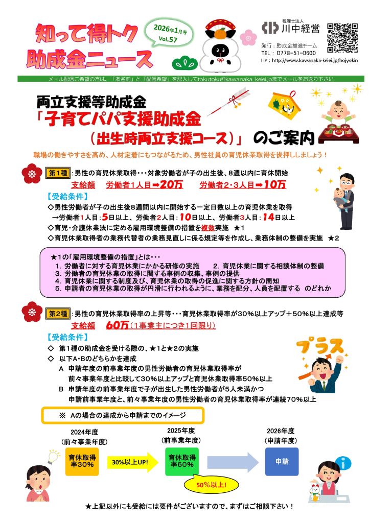 子育てパパ支援助成金(出生時両立支援コース)Vo57