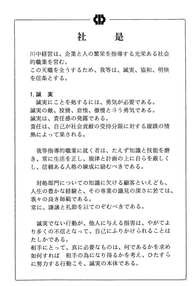 川中経営の精神(社是)